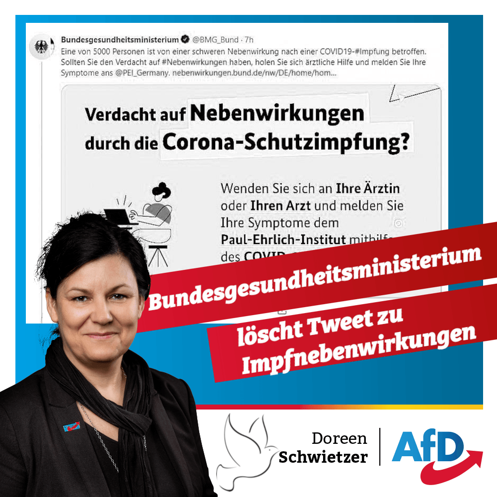 Letzten Mittwoch twitterte das Bundesgesundheitsministerium, dass „Eine von 5000 Personen […] von einer schweren Nebenwirkung nach einer COVID19-#Impfung betroffen“ sei. Einen Tag darauf wurde der Eintrag bei Twitter wieder gelöscht und es wurde eine „Richtigstellung“ veröffentlicht.