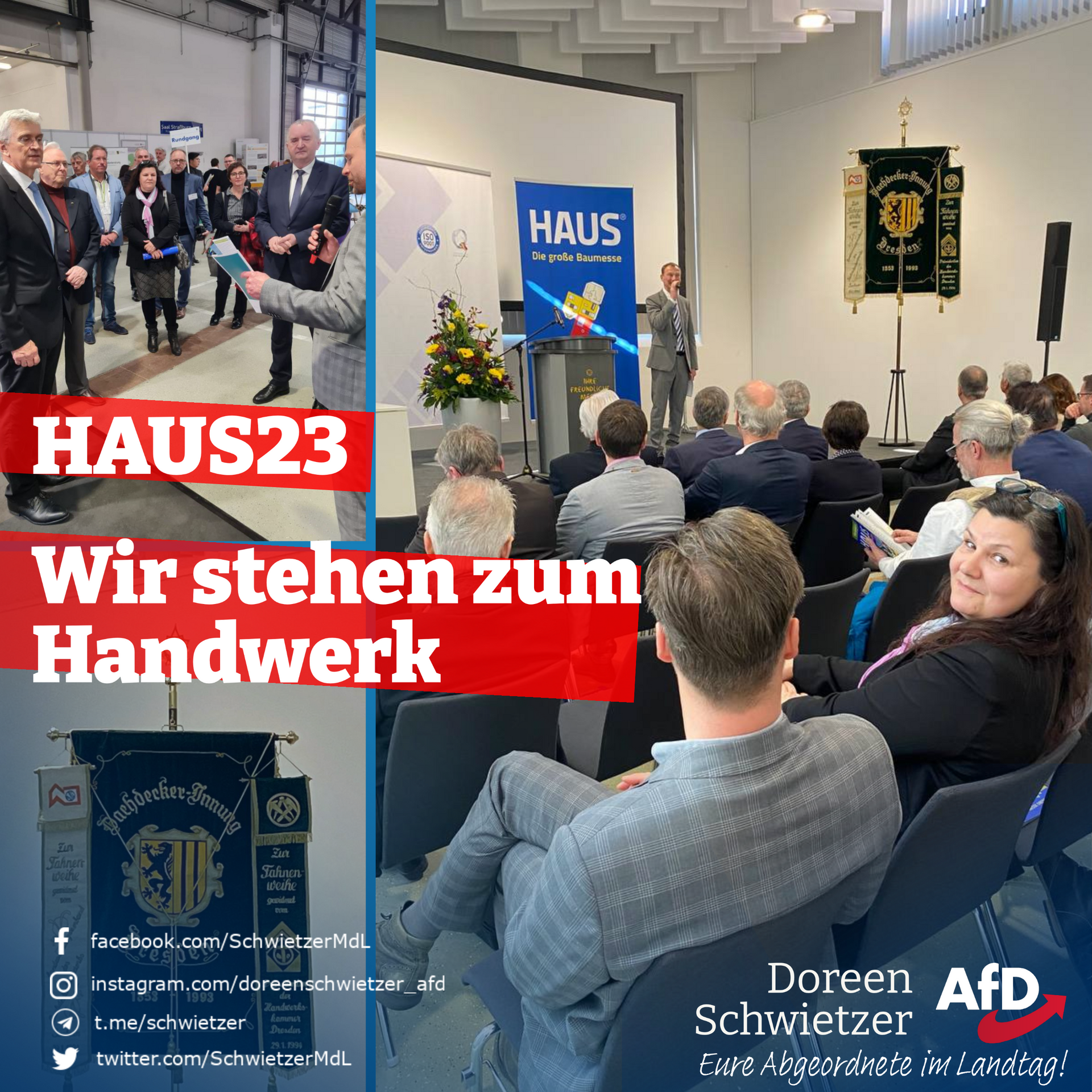 Wir unterstützen weiterhin, gerade in diesen schwierigen Zeiten, das Sächsische Handwerk. Deswegen war ich am Freitag auf der HAUS23 in Dresden und suchte das Gespräch mit unseren sächsischen Handwerkern.