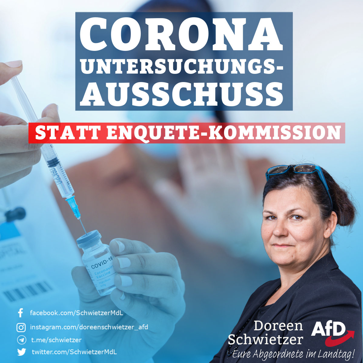 Ich fordere als Landtagsabgeordnete und stellvertretende Ausschussvorsitzende für Soziales und Gesellschaftlichen Zusammenhalt im Sächsischen Landtag, die Notwendigkeit eines Untersuchungsausschusses. Insbesondere im Kontext der Corona-Pandemie ist es von entscheidender Bedeutung, mögliche Unregelmäßigkeiten und Fehler aufzuklären. Ich verweise auf die „Akte Corona“, ein umfangreiches Dossier zum Thema, das von unserer sächsischen AfD-Fraktion erstellt wurde und als Grundlage für einen möglichen Untersuchungsausschuss dienen soll.