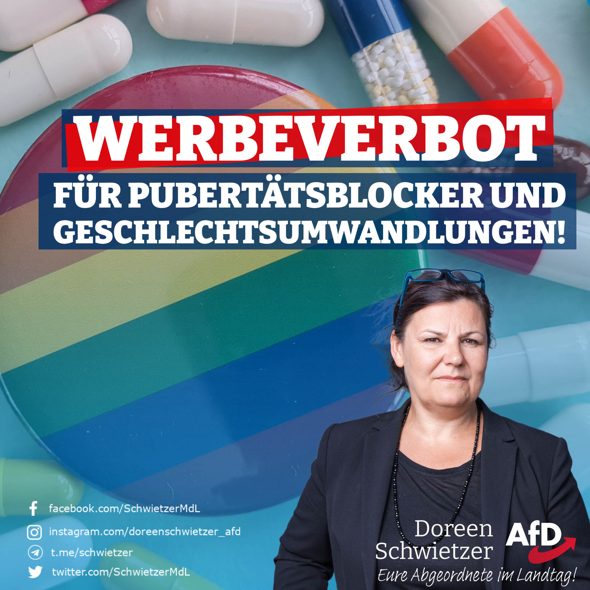 „Die Zahl der Geschlechtsumwandlungen mit Pubertätsblockern und chirurgischen Eingriffen ist in Sachsen drastisch gestiegen. Angeheizt wird dieser Trend durch eine Vielzahl von unkritischen Darstellungen in den Medien. Dazu kommt der ungehinderte Zugang von Transsexuellen-Lobbyvereinen an sächsischen Schulen, ohne dass deren Projekte vom Kultusministerium überprüft werden.