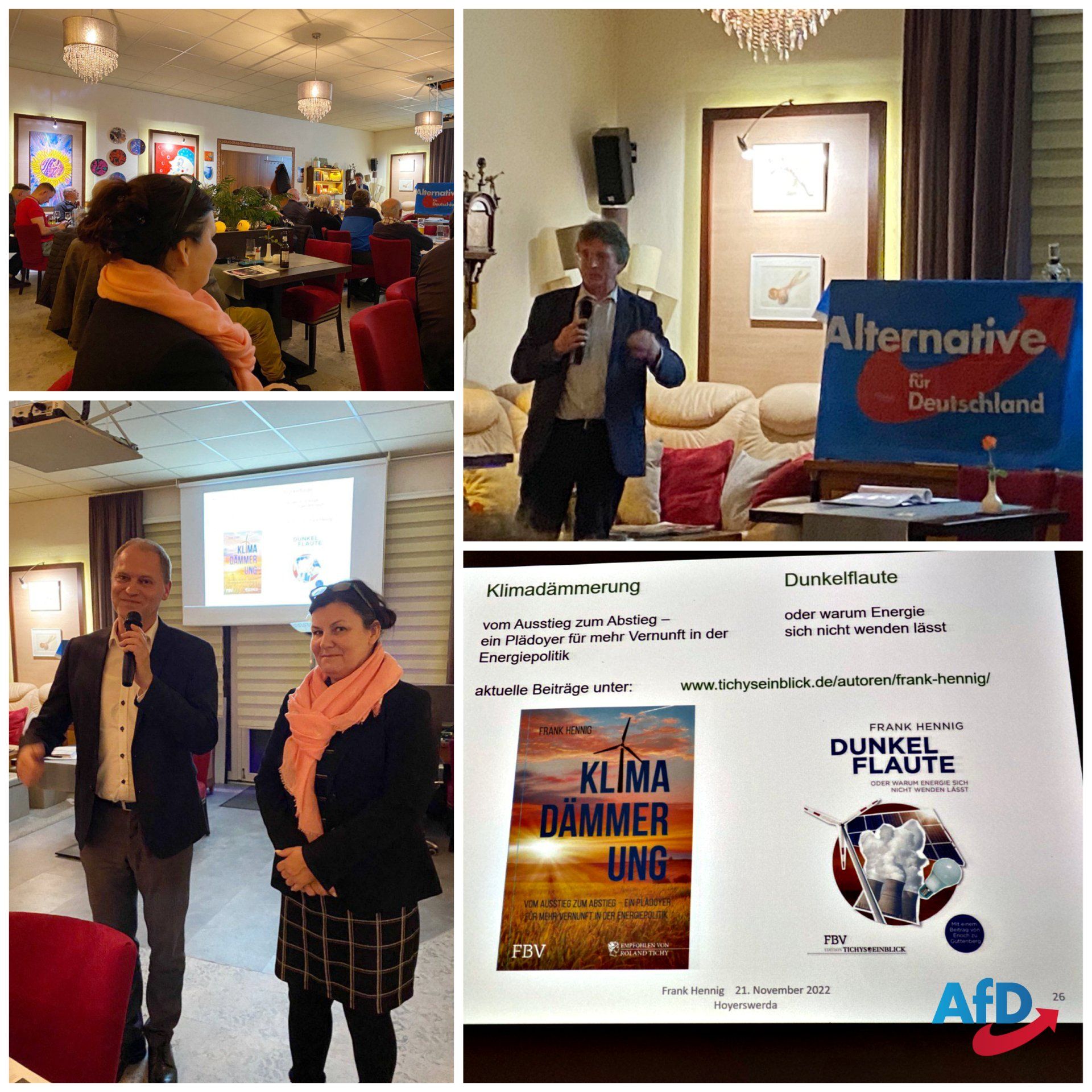 Unter dem Titel „Energiewende am Ende?“ referierte Frank Hennig am Abend des 21.11.2022 im Allee – Restaurant in Hoyerswerda.